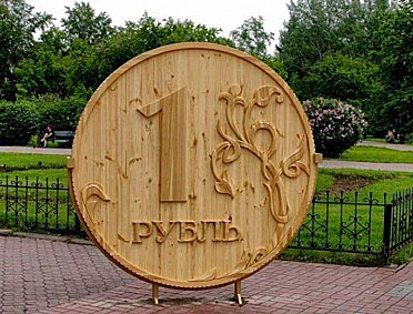 В столице Бурятии есть памятник монете номиналом 1 рубль. Масса памятника-монеты составила более 300 кг. Диаметр 2500 см. Выполнена она из древесины лиственницы. Она в 122 раза больше оригинала.