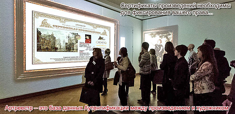 Таким образом, теперь, не выходя из дома, галереи или своей творческой мастерской, находясь в большом городе или маленьком поселке, Вы можете зарегистрировать свои произведения, тем самым узаконив свое приоритетное авторское право на них. При этом сертификации подлежат не только картины, но и любые другие произведения искусства, включая предметы антиквариата. Этот шаг к цивилизованному арт-рынку сможет уберечь Вас в случае возникновения форс-мажорных обстоятельств, таких как пропажа, несанкционированное копирование Ваших работ и других неприятностей.
